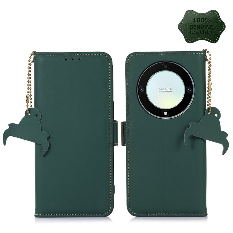 For Honor X9a 4G Genuine Leather Magnetic RFID Leather Phone Case(Green)