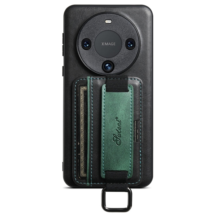 For Huawei Mate 60 Pro+ Suteni H13 Card Wallet Wrist Strap Holder PU Phone Case(Black)