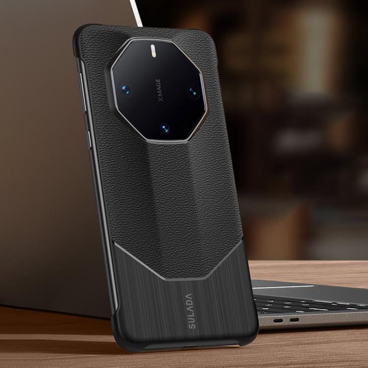 For Huawei Mate 60 RS Ultimate SULADA Frameless Top Layer Cowhide Leather Hybrid PC Phone Case(Black)
