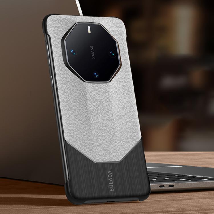 For Huawei Mate 60 RS Ultimate SULADA Frameless Top Layer Cowhide Leather Hybrid PC Phone Case(White)