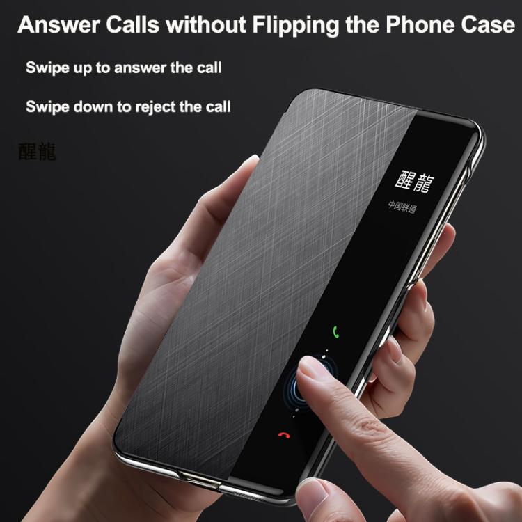 For Huawei Mate 60 Smart View Window Plain Leather Paint PC Phone Case(Black)