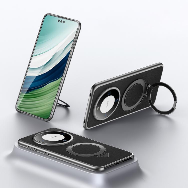 For Huawei Mate 60 SULADA Top Grain Leather MagSafe Magnetic Holder Phone Case(Black)