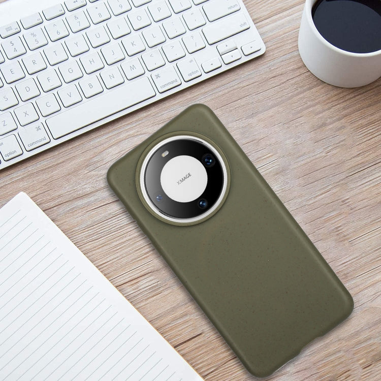 For Huawei Mate 60 Wheat MagSafe Magnetic Straw Material + TPU Phone Case(Army Green)