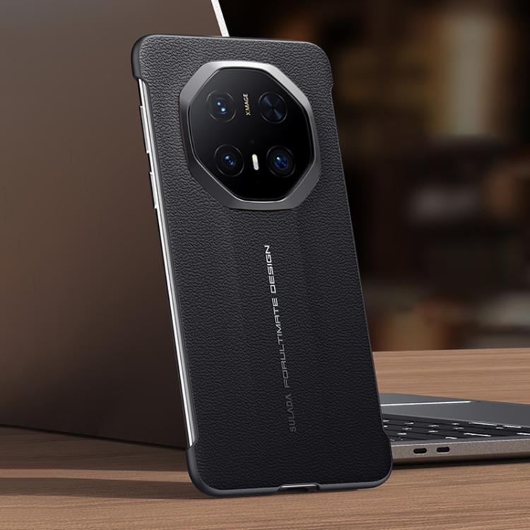 For Huawei Mate 70 RS Ultimate SULADA Frameless Top Layer Cowhide Leather Hybrid PC Phone Case(Black)