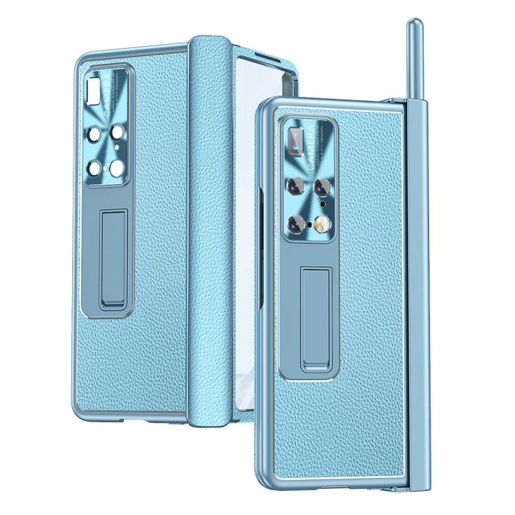 For Huawei Mate X2 Litchi Pattern Magnetic Shell Film Integrated Shockproof Phone Case(Far Peak Blue)