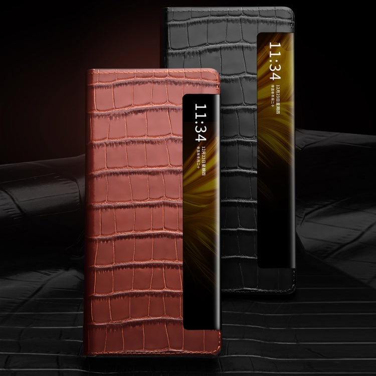 For Huawei Mate X2 QIALINO Crocodile Pattern Side Window View Genuine Leather Phone Case(Brown)