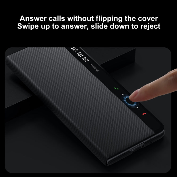 For Huawei Mate X3 SULADA Kevlar 600D Texture Smart Window Leather Phone Case(Purple)