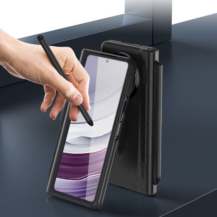For Huawei Mate X5 Integrated Film Plain Leather Phone Case with Pen(Black)