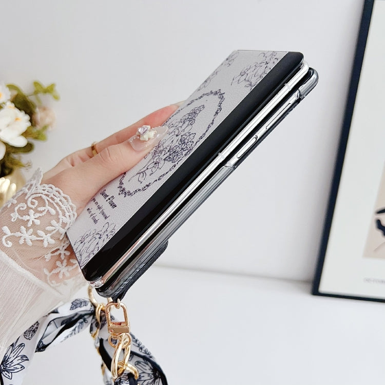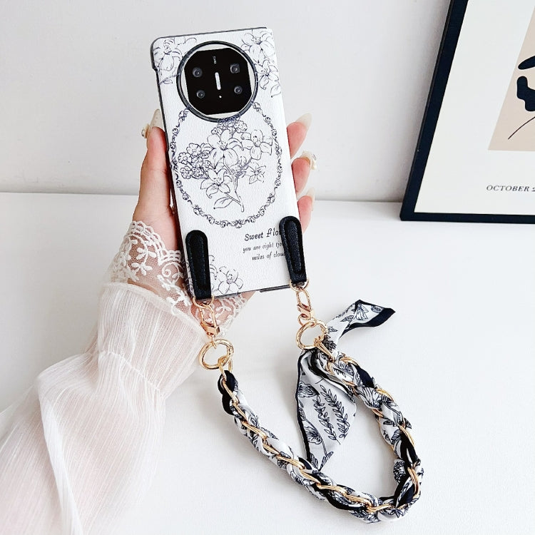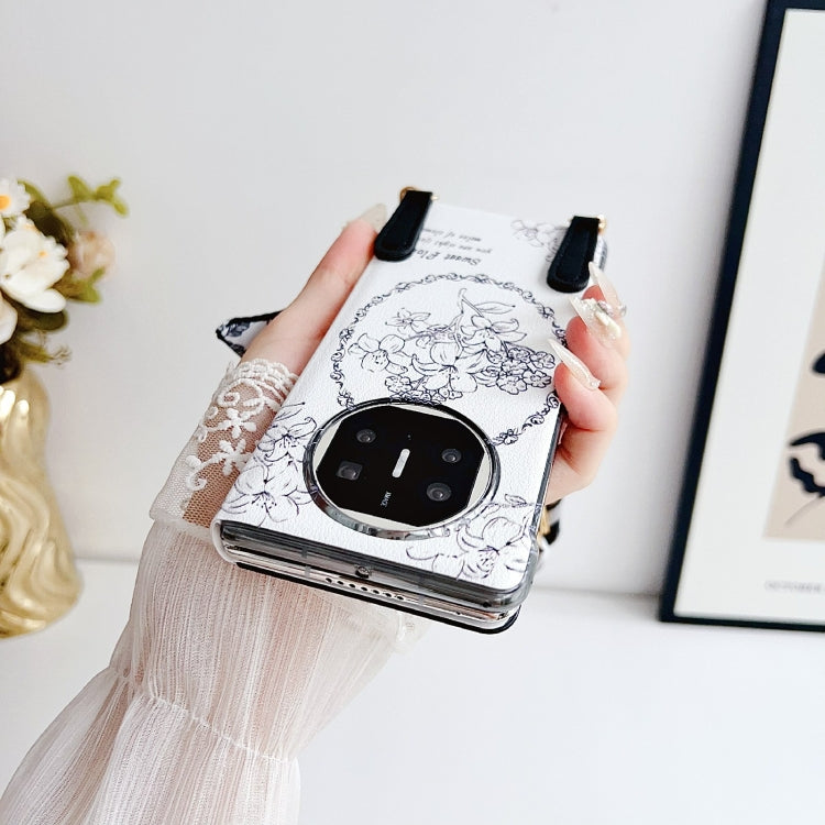 For Huawei Mate X5 / X2 Sketching Flowers Flip Leather Phone Case with Bracelet(Black)