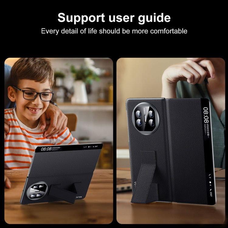 For Huawei Mate X5 / X3 SULADA Smart Series Wristband Holder Smart View Window Genuine Leather Phone Case(Blue)