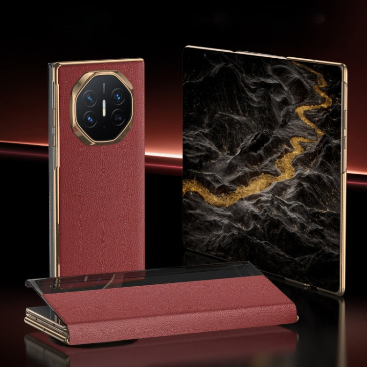 For Huawei Mate XT Ultimate Smart Side View Window Plain Leather Phone Case(Dark Red)
