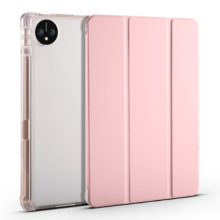 For Huawei MatePad Pro 11 2024 3-fold Clear TPU Leather Tablet Case with Pen Slot(Pink)