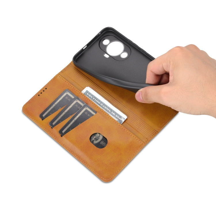 For Huawei Nova 11 Pro AZNS Magnetic Calf Texture Flip Leather Phone Case(Light Brown)