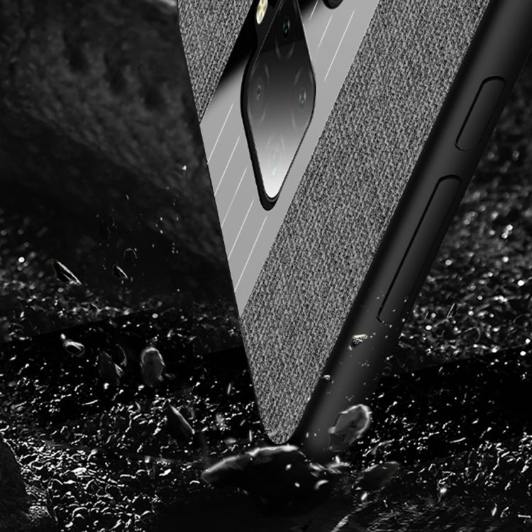 For Huawei nova 5i Pro XINLI Stitching Cloth Textue Shockproof TPU Protective Case with Ring Holder(Brown)