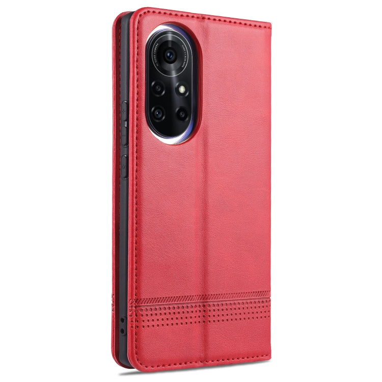For Huawei nova 8 5G AZNS Magnetic Calf Texture Horizontal Flip Leather Case with Card Slots & Holder & Wallet(Red)