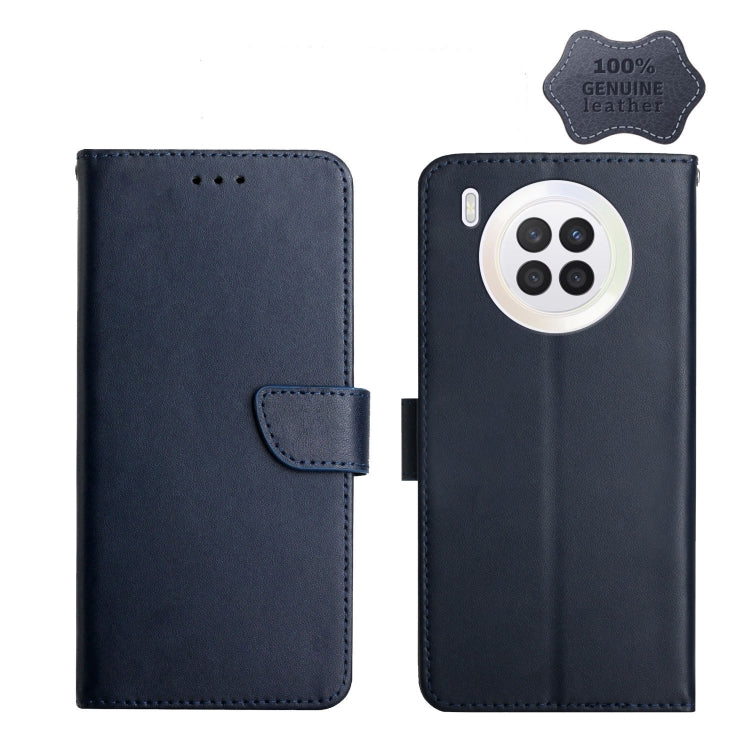 For Huawei Nova 8i/Honor 50 Lite Global Genuine Leather Fingerprint-proof Horizontal Flip Phone Case(Blue)