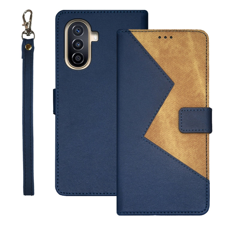 For Huawei nova Y71 idewei Two-color Splicing Leather Phone Case(Blue)