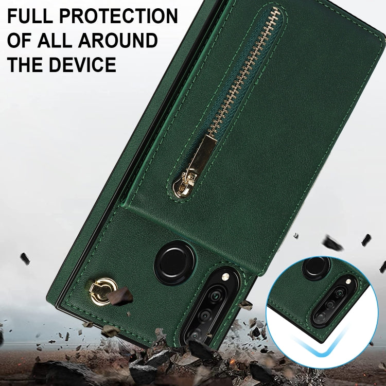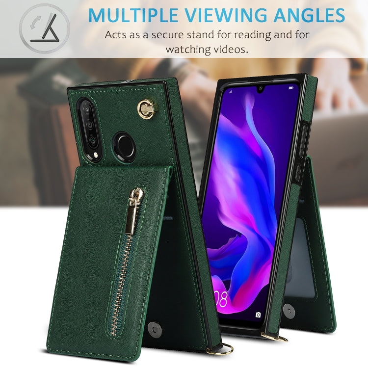 For Huawei P30 Lite Cross-body Zipper Square TPU+PU Back Cover Case with Holder & Card Slots & Wallet & Strap(Green)