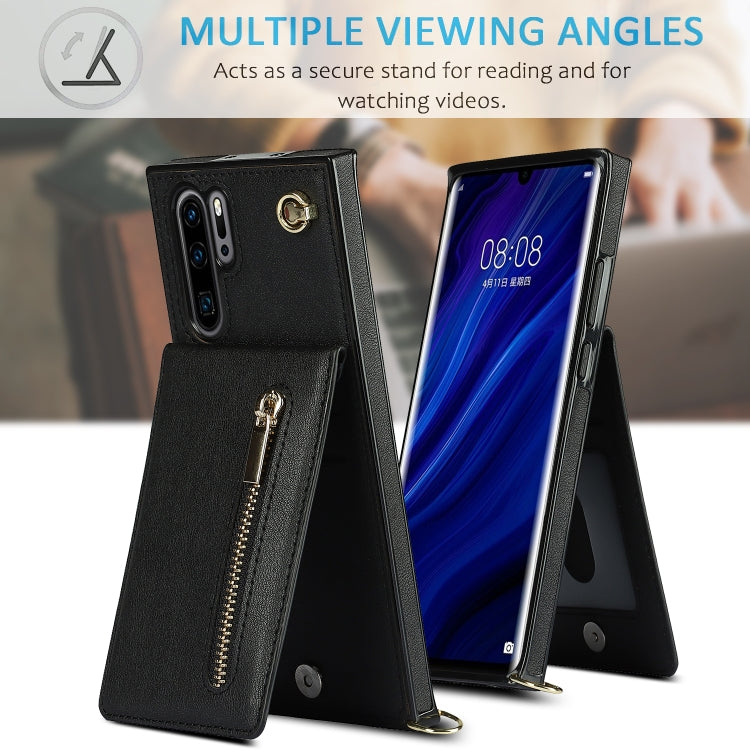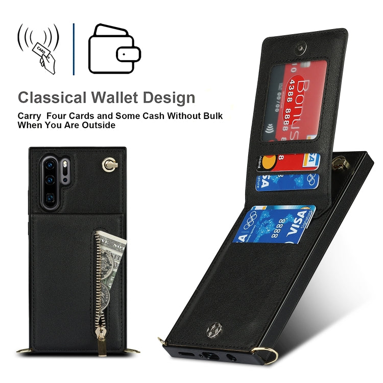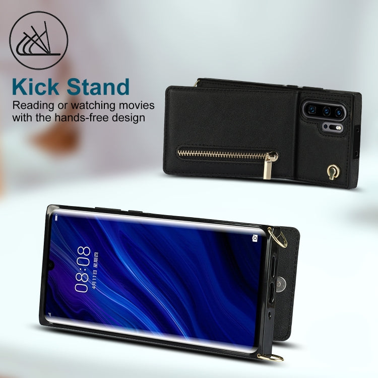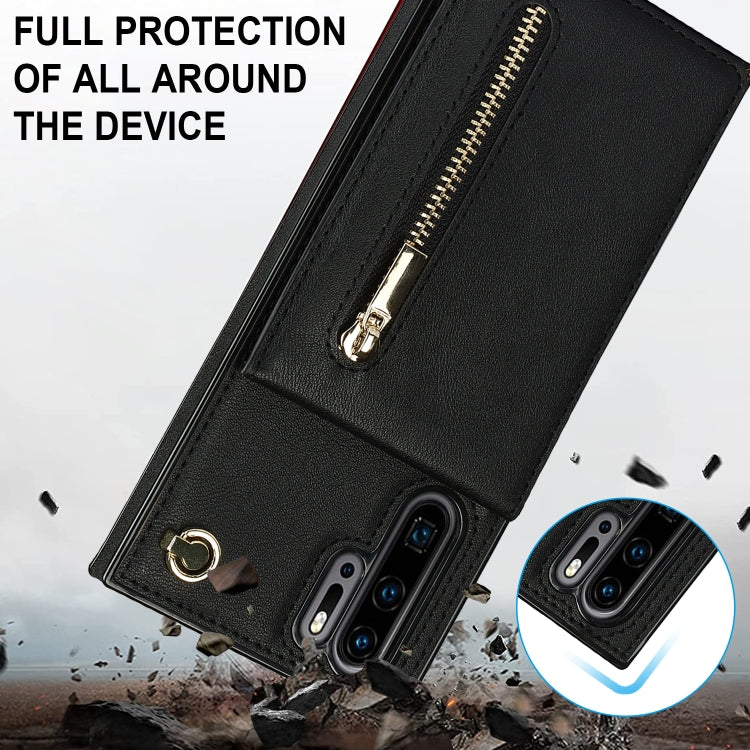 For Huawei P30 Pro Cross-body Zipper Square TPU+PU Back Cover Case with Holder & Card Slots & Wallet & Strap(Black)
