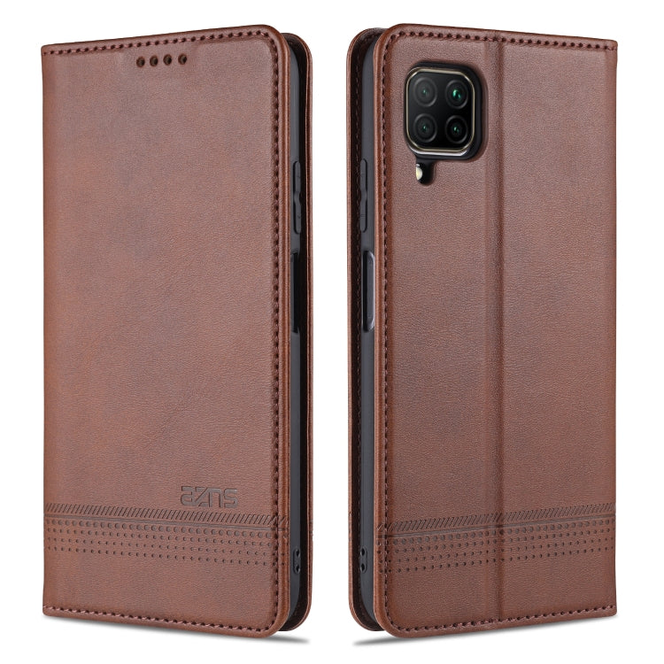 For Huawei P40 Lite / nova 6 SE AZNS Magnetic Calf Texture Horizontal Flip Leather Case with Card Slots & Holder & Wallet(Dark Brown)