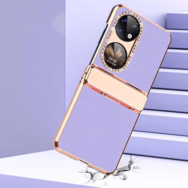 For Huawei P50 Pocket Plated Plain Leather Folding Phone Case with Hinge(Black)