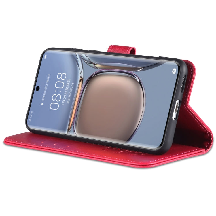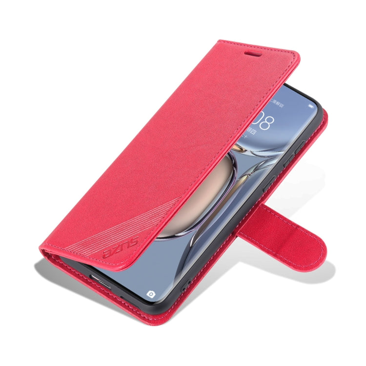 For Huawei P50 Pro AZNS Sheepskin Texture Horizontal Flip Leather Case with Holder & Card Slots & Wallet(Red)