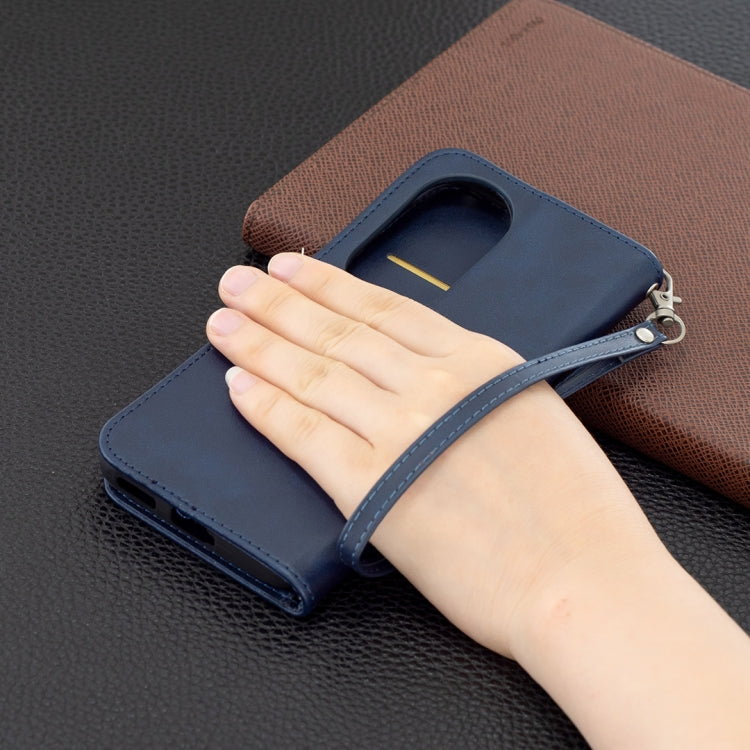 For Huawei P50 Pro Retro Lambskin Texture Pure Color Horizontal Flip PU Leather Case with Holder & Card Slots & Wallet & Lanyard(Blue)