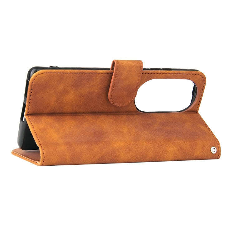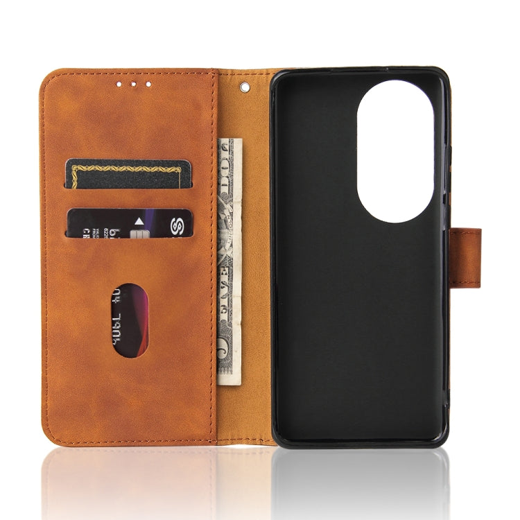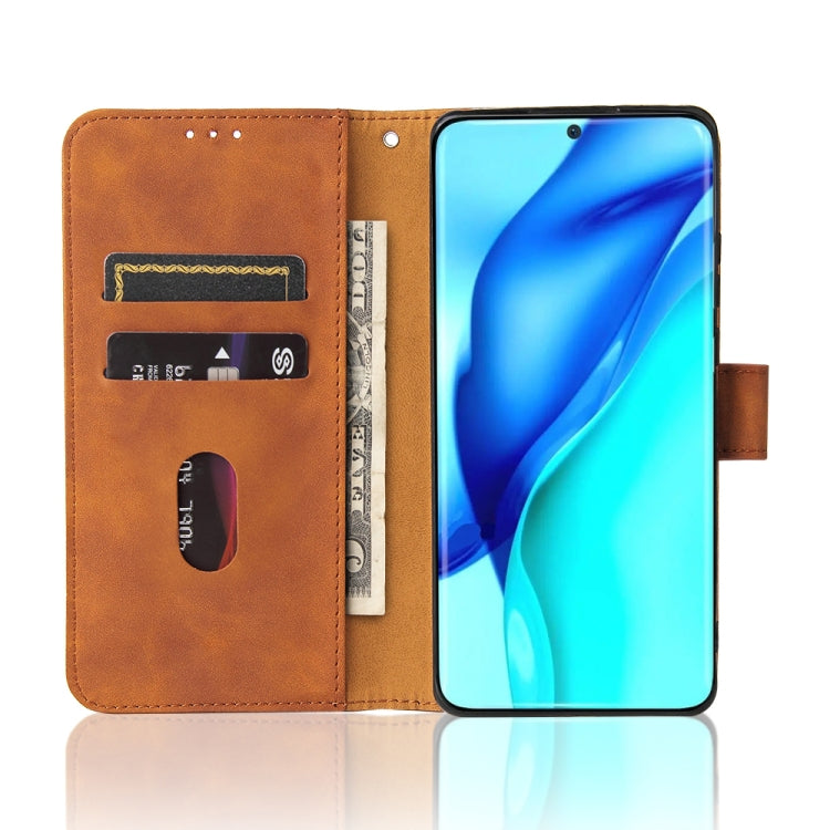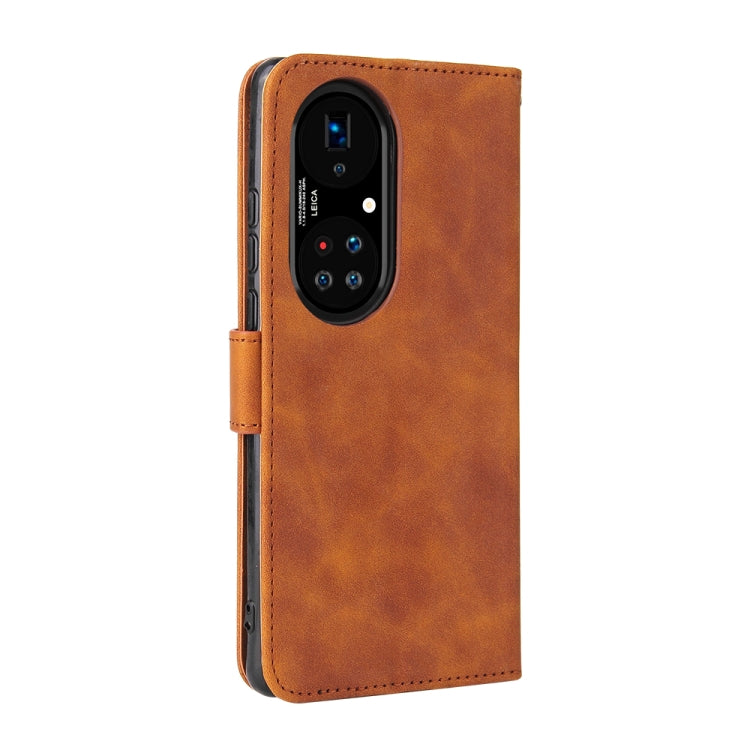 For Huawei P50 Pro Solid Color Skin Feel Magnetic Buckle Horizontal Flip Calf Texture PU Leather Case with Holder & Card Slots & Wallet(Brown)