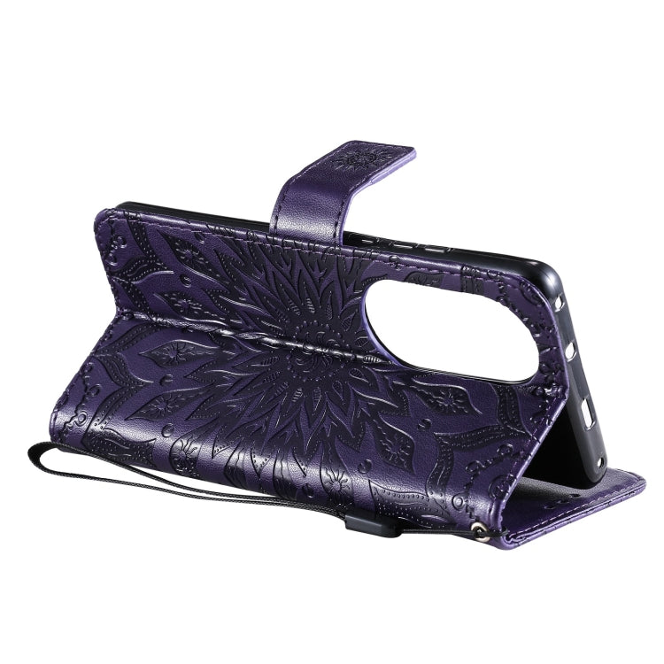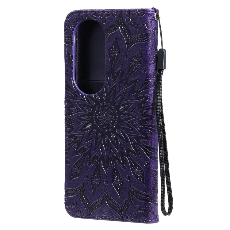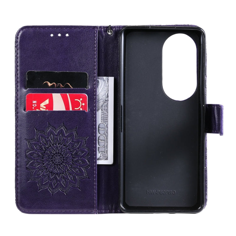 For Huawei P50 Pro Sun Embossing Pattern Horizontal Flip Leather Case with Card Slot & Holder & Wallet & Lanyard(Purple)