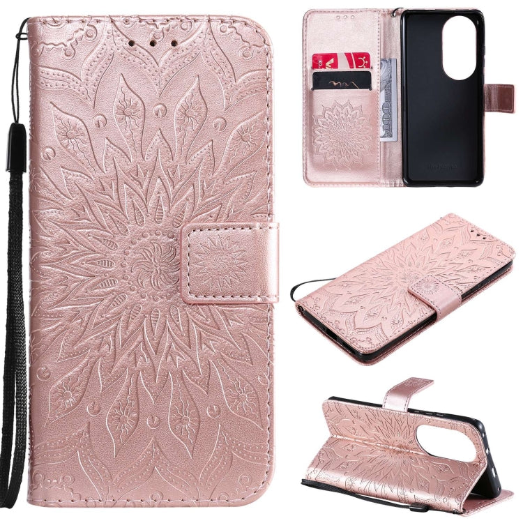 For Huawei P50 Pro Sun Embossing Pattern Horizontal Flip Leather Case with Card Slot & Holder & Wallet & Lanyard(Rose Gold)