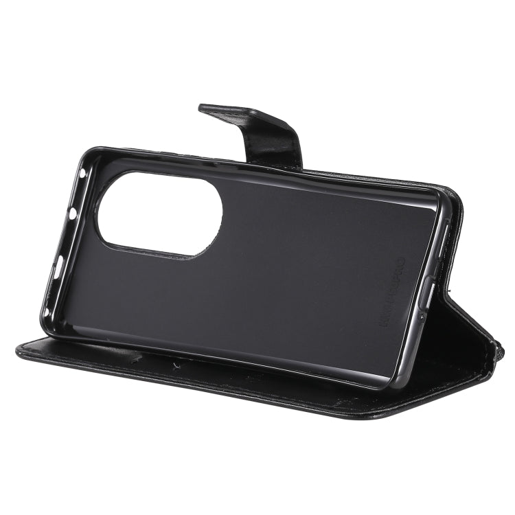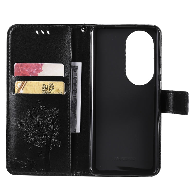 For Huawei P50 Pro Tree & Cat Pattern Pressed Printing Horizontal Flip PU Leather Case with Holder & Card Slots & Wallet & Lanyard(Black)