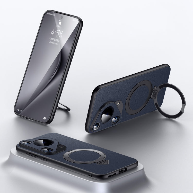 For Huawei Pura 70 Ultra SULADA Top Grain Leather MagSafe Magnetic Holder Phone Case(Blue)