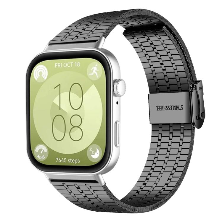 For Huawei Watch Fit4 Pro / Fit4 / Fit3 xDfind Seven Beads Buckle Stainless Steel Watch Band(Black)