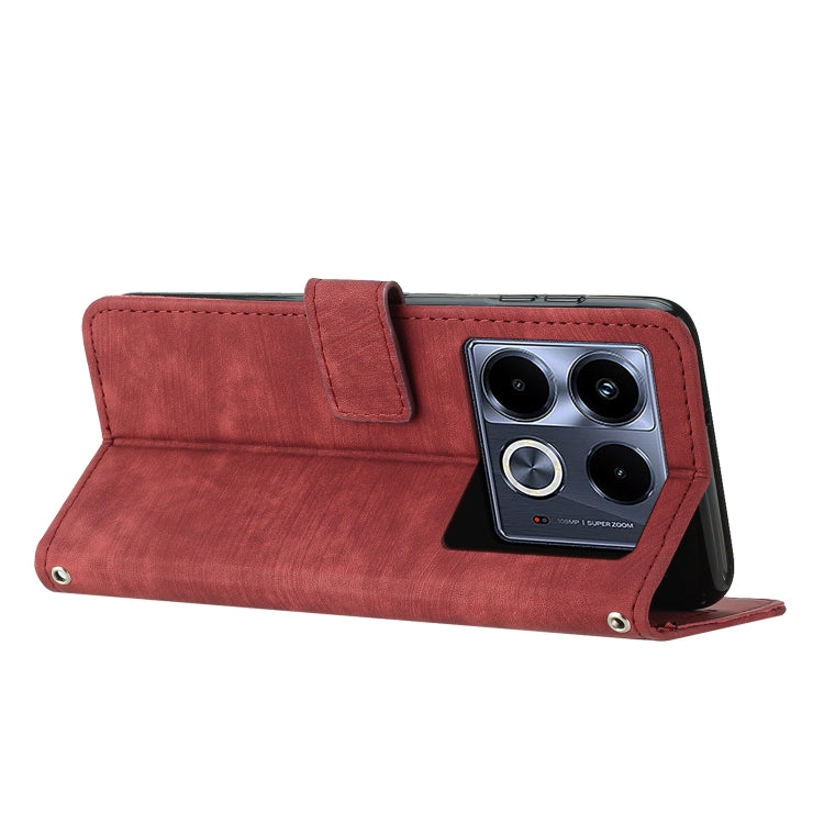 For Infinix Note 40 4G Skin Feel Stripe Pattern Leather Phone Case with Lanyard(Red)