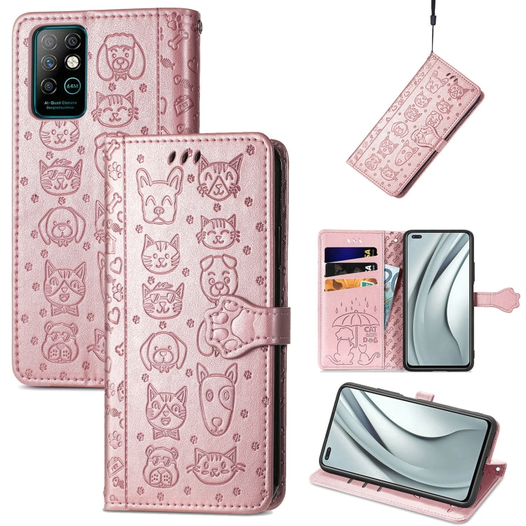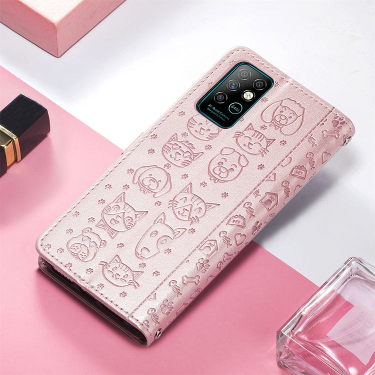 For Infinix Note 8 Lovely Cat and Dog Embossing Pattern Horizontal Flip Leather Case , with Holder & Card Slots & Wallet & Cartoon Clasp & Lanyard(Rose Gold)