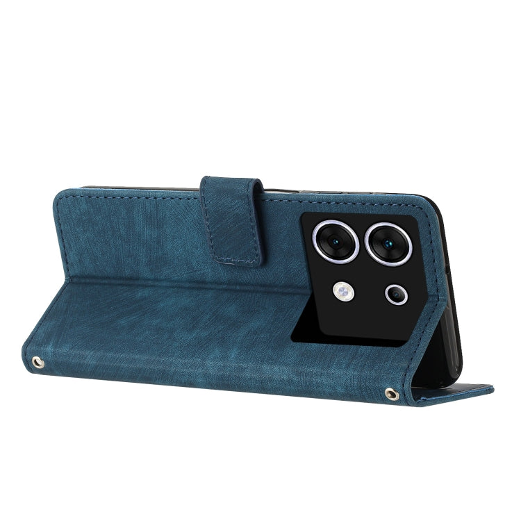 For Infinix Zero 30 5G Skin Feel Stripe Pattern Leather Phone Case with Lanyard(Blue)