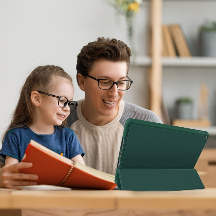 For iPad 10.2 2021 / 2020 / 2019 3-fold TPU Smart Leather Tablet Case with Pen Slot(Dark Green)