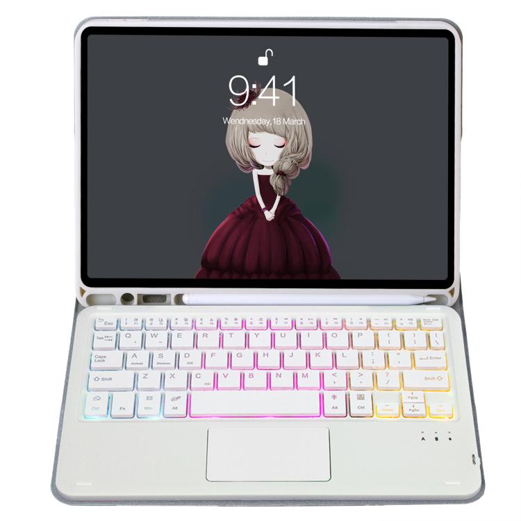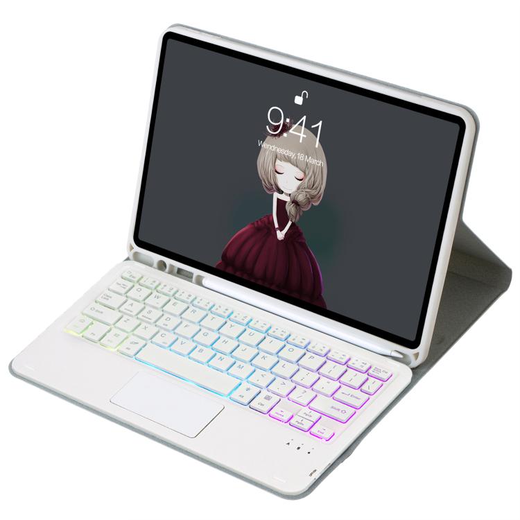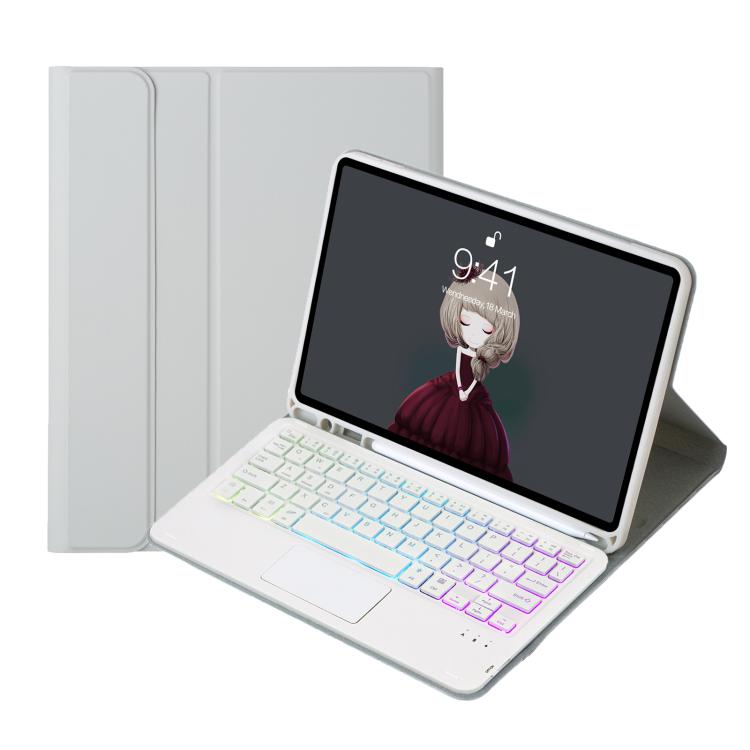 For iPad 10.2 2021&2020&2019/Air 2019/Pro 10.5 Lambskin Pen Slot Touch Pad Backlight Bluetooth Keyboard Leather Tablet Case(Grey)