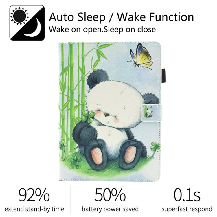 For iPad 10.2 2021 / 2020 / 2019 Coloured Drawing Pattern Horizontal Flip Leather Case with Holder & Card Slots & Photo Frame(Panda)