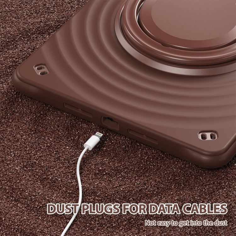 For iPad 10.2 2021 / 2020 / 2019 Rotation Handle Holder Silicone Hybrid PC Tablet Case(Chocolate)