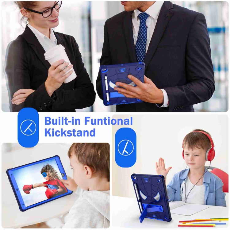 For iPad 10.2 2021 / 2020 / 2019 Spider Texture Silicone Hybrid PC Tablet Case with Shoulder Strap(Navy Blue + Blue)