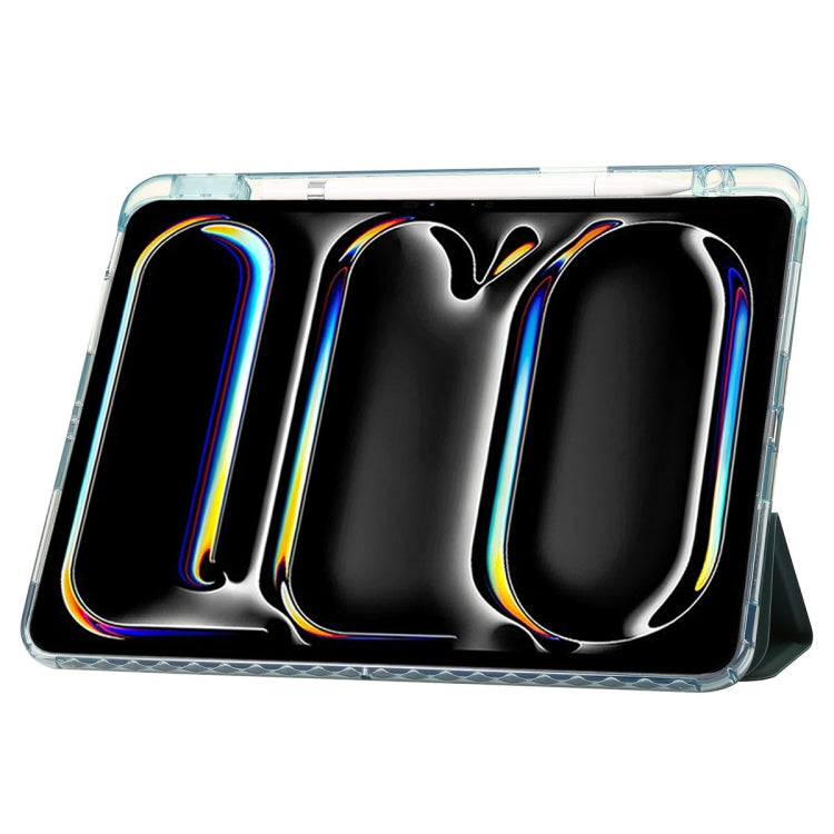 For iPad Air 11 2025 / 2024 Clear Acrylic 3-Fold Leather Tablet Case(Dark Green)