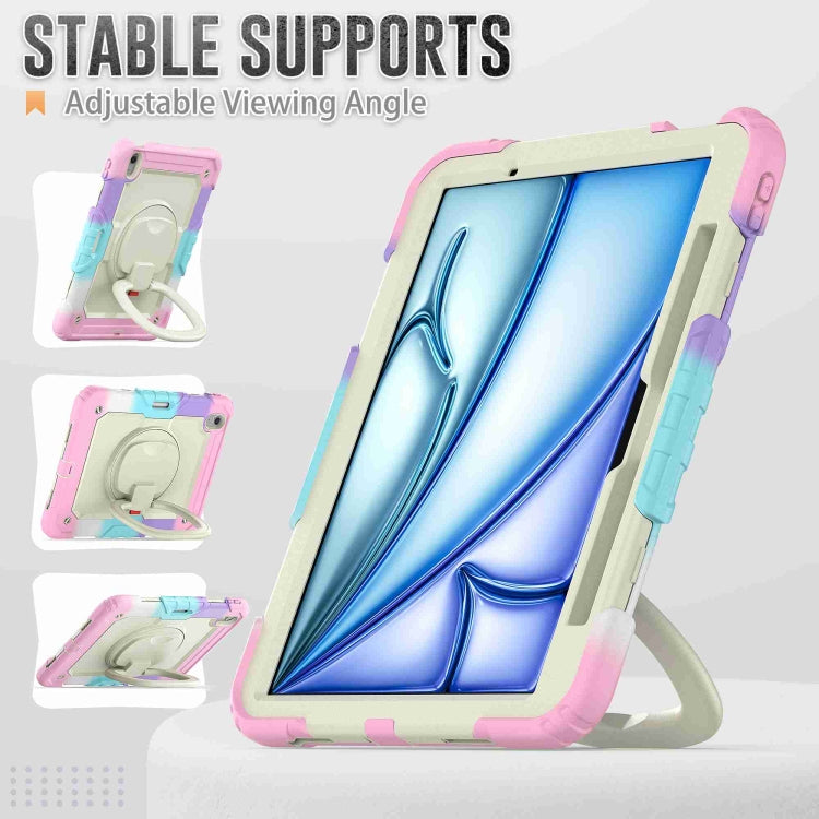 For iPad Air 11 2025 / 2024 Handle Silicone Hydric PC Tablet Case with Shoulder Strap(Rainbow Pink)