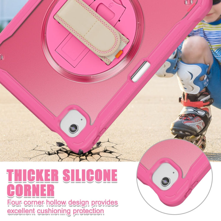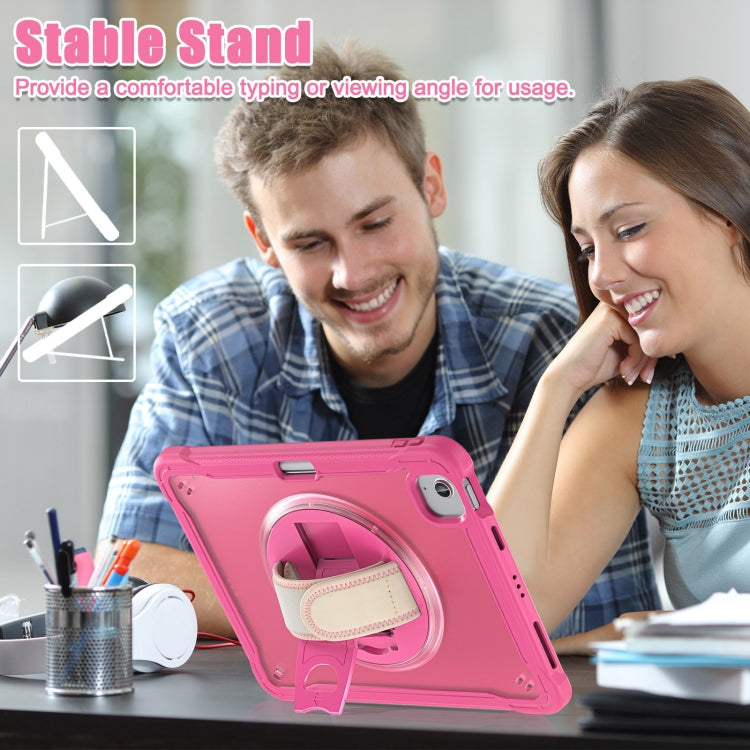 For iPad Air 11 2025 / 2024 Heavy Duty Hybrid Tablet Case with Hand Grip & Strap(Rose Red)