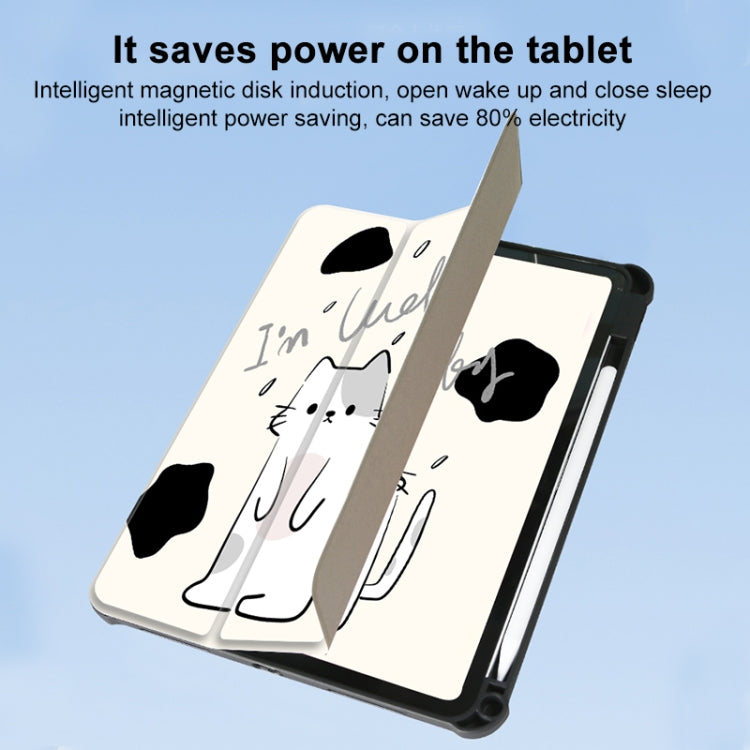 For iPad Air 11 2025 / 2024 3-Fold 360 Rotation Painted Leather Smart Tablet Case(Lucky Cat)