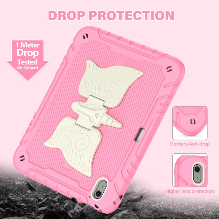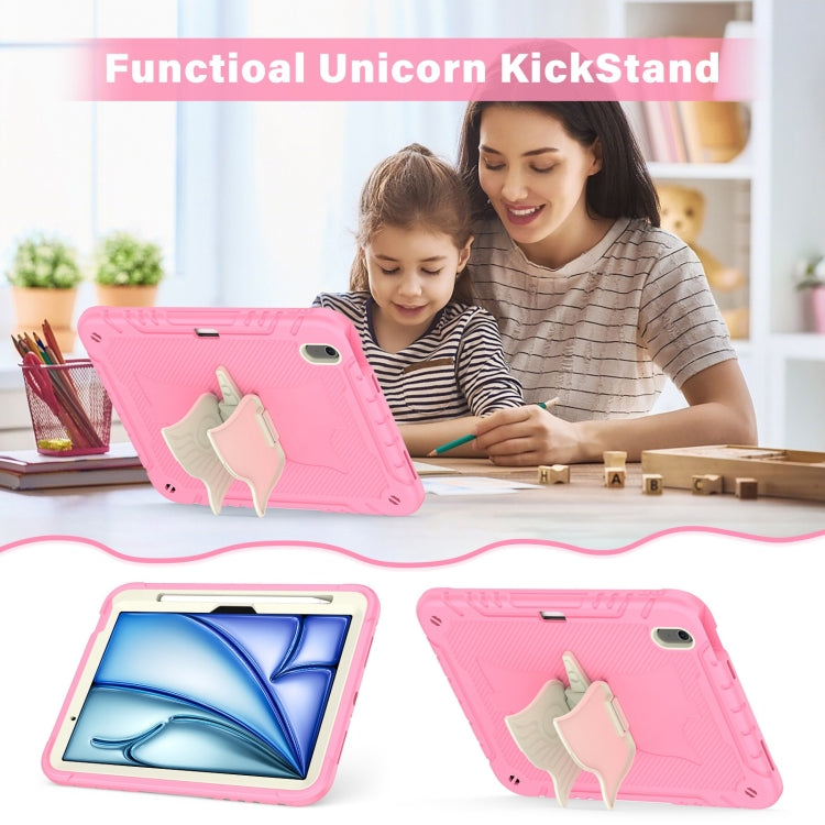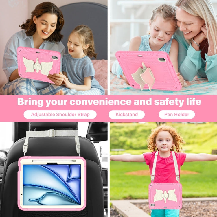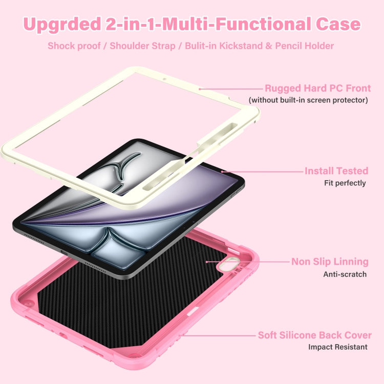 For iPad Air 11 2025 / 2024 Kickstand PC Hybrid Silicone Tablet Case with Strap(Beige Pink)