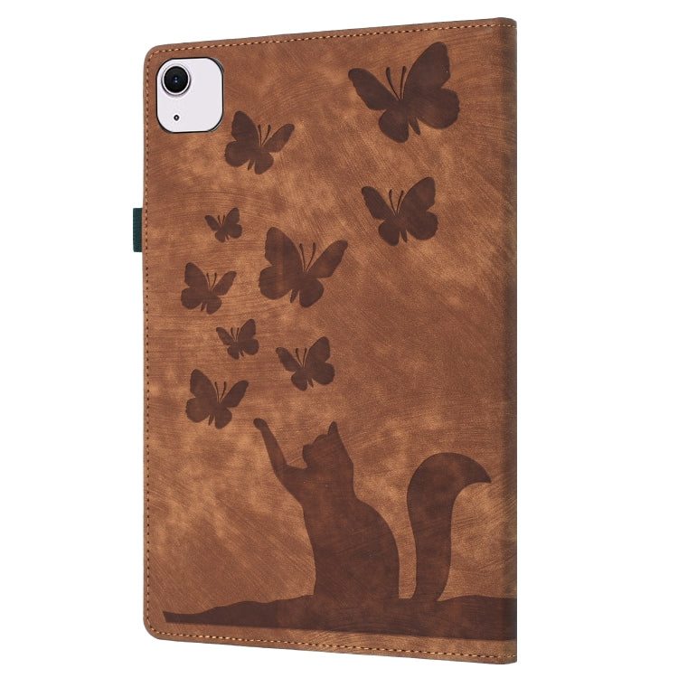 For iPad Air 11 2024 / Air 11 2025 Butterfly Cat Embossing Leather Tablet Case(Brown)