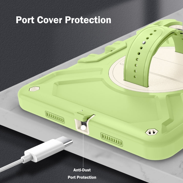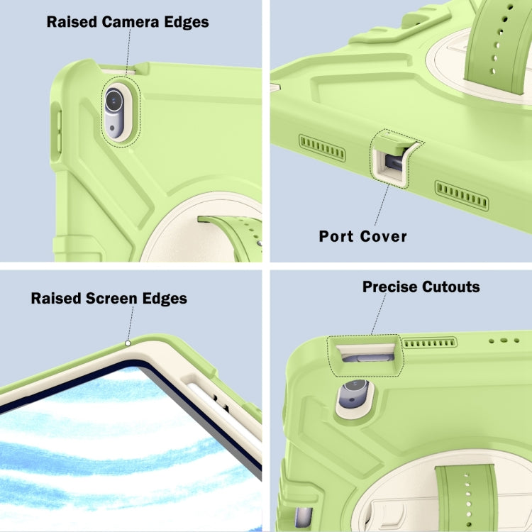 For iPad Air 11 2025 / 2024 X Rotation PC Hybrid Silicone Tablet Case with Strap(Yellow Green White)