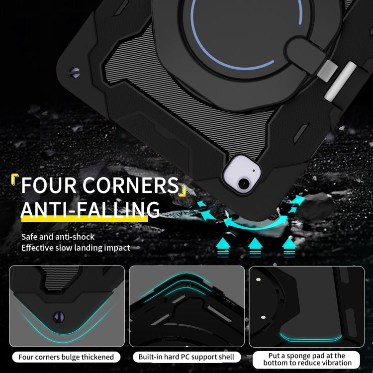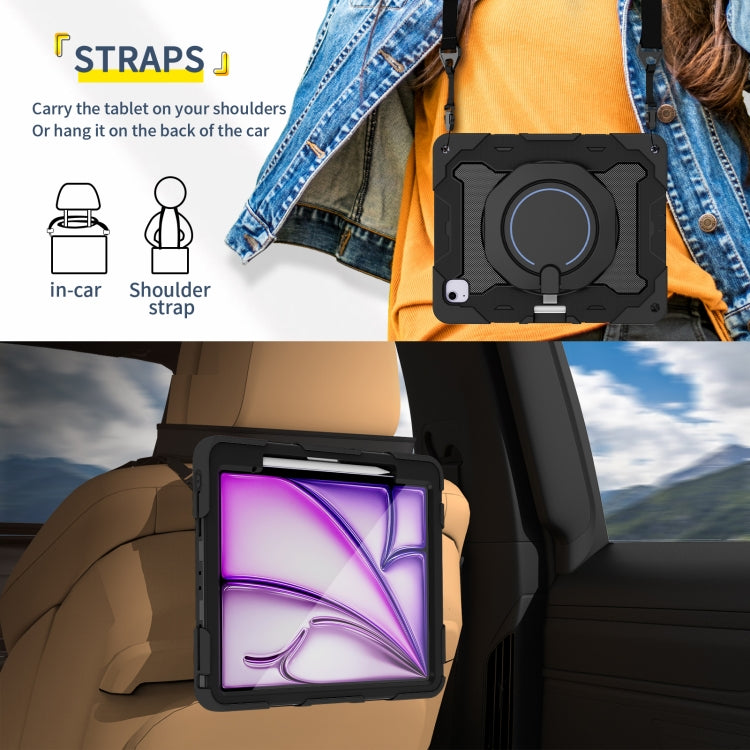 For iPad Air 13 2024 / 2025 Armor Portable Rotating Ring Holder Silicone Tablet Case with Pen Slot(Black)