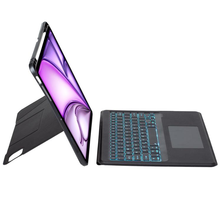 For iPad Air 13 2025 / 2024 / iPad Pro 12.9 Holder Floating Detachable Backlight Keyboard Tablet Leather Case with Touchpad(Black)